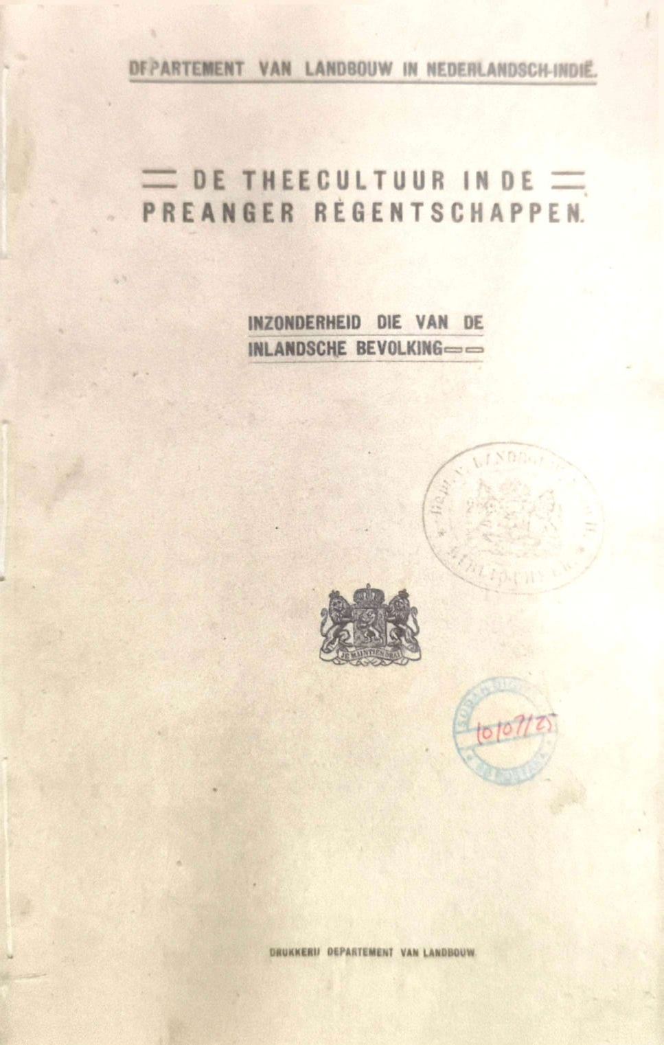 De theecultuur in de Preanger regentschappen : inzonderheid die van de inlandsche bevolking / Depart....
