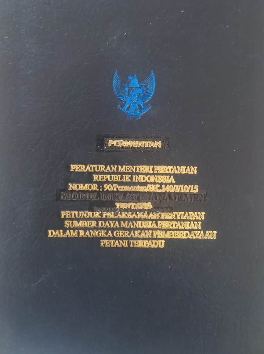 | Catatan | Peraturan menteri pertanian tentang petunjuk pelaksanaan penyiapan sumberdaya manusia pertanian dalam rangka gerakan pemberdayaan petani terpadu |