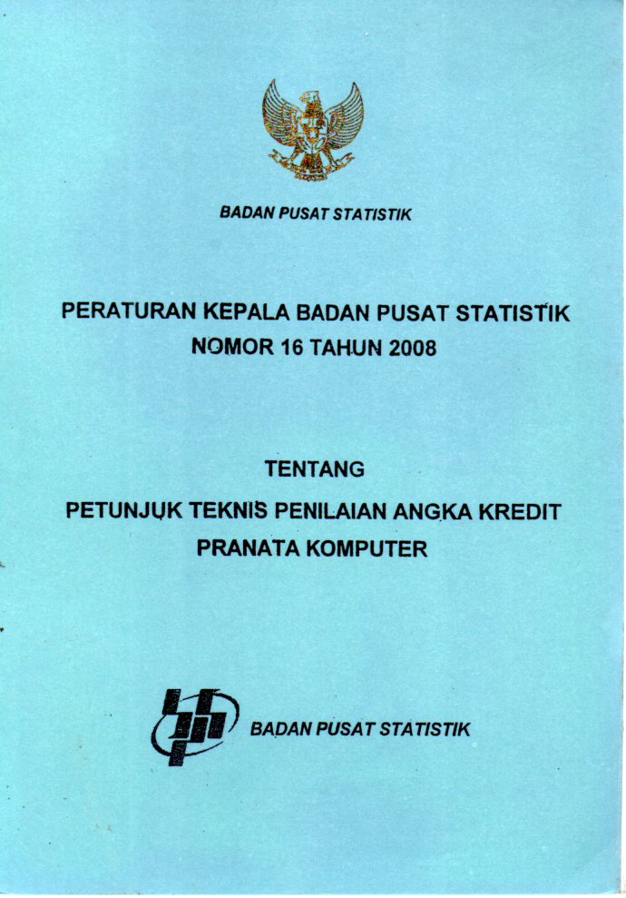 | Judul | Peraturan Kepala Badan Pusat Statistik Nomor 16 Tahun 2008 tentang Petunjuk Teknis Penilaian Angka Kredit Pranata Komputer BADAN PUSAT STATISTIK |