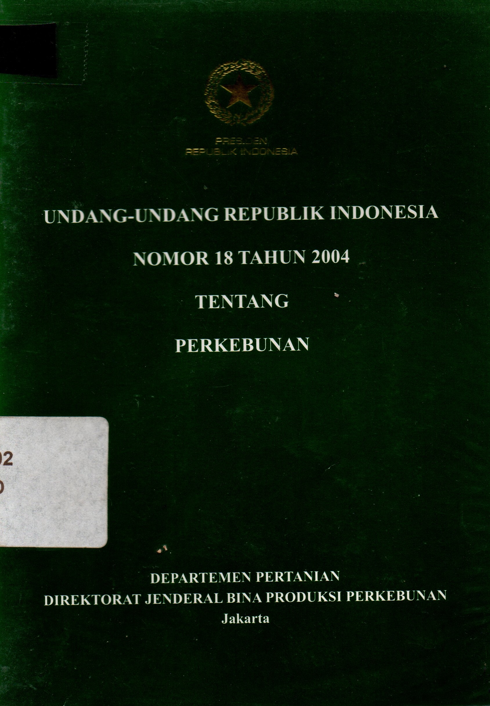 | Judul | Undang-undang Republik Indonesia nomor 18 tahun 2004 tentang perkebunan |