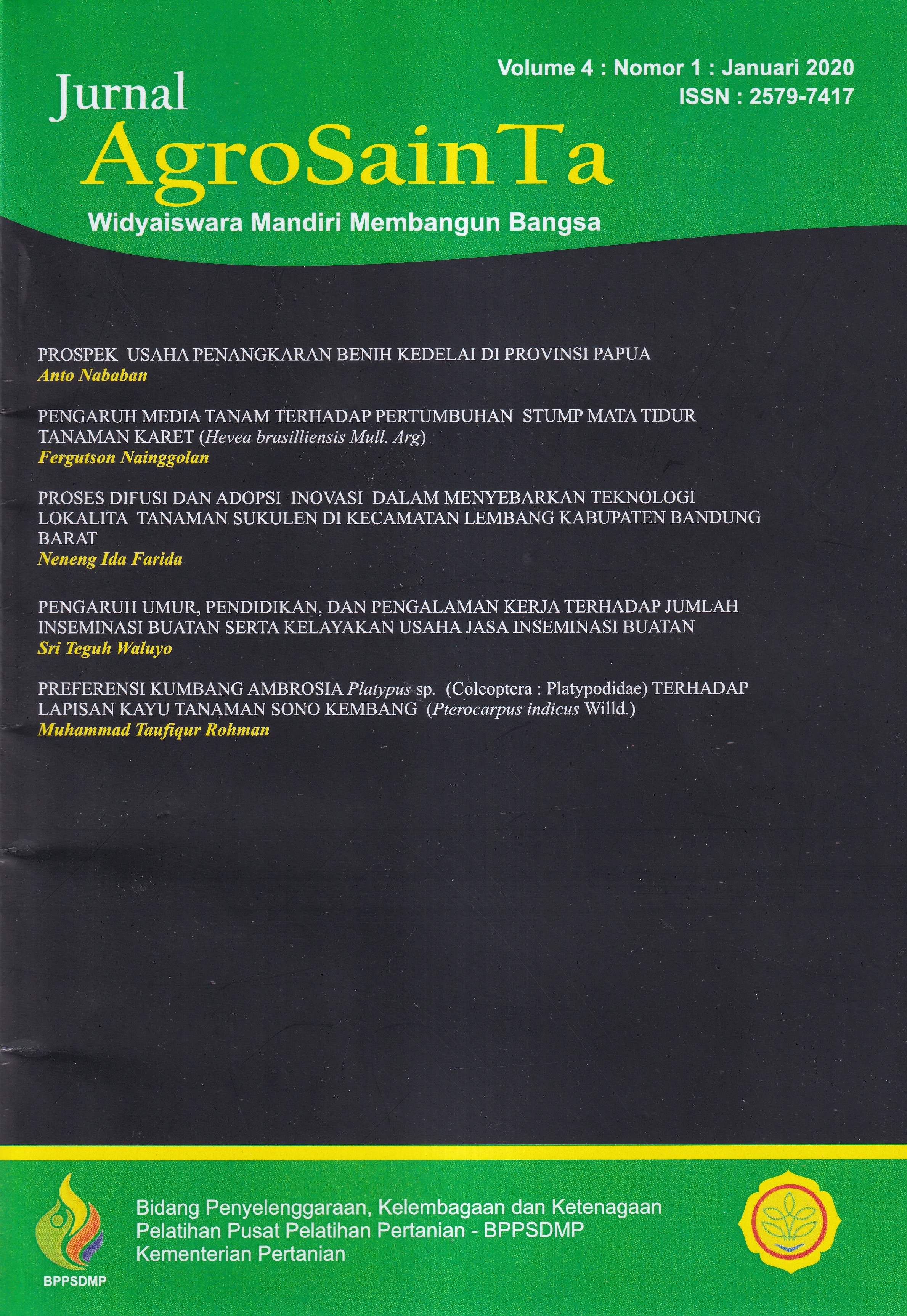 Jurnal agrosainta volume 4 nomor 1, Januari 2020 : widyaiswara mandiri membangun bangsa / Kepala Pu....