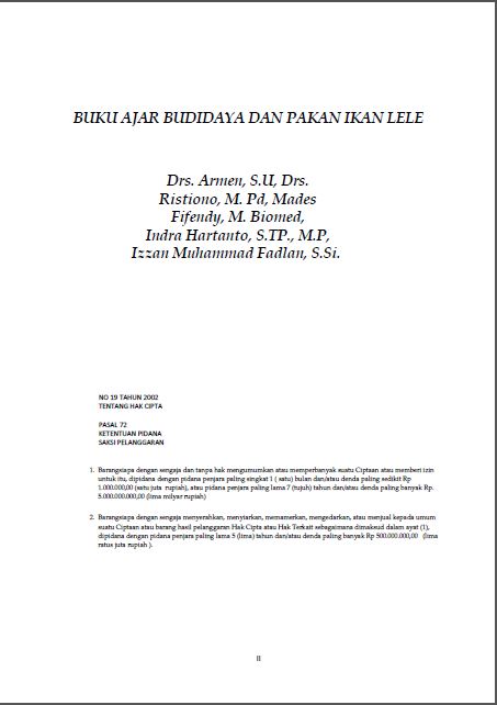 | 1 | Buku ajar budidaya dan pakan ikan lele.pdf | Buku ajar budidaya dan pakan ikan lele | Baca Online |