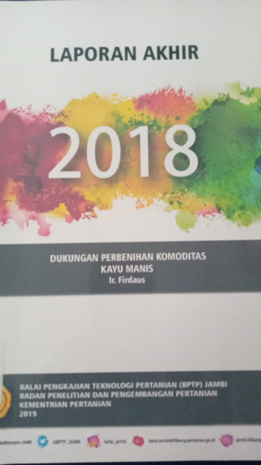 | Judul | Dukungan Perbenihan Komoditas Kayu Manis : Laporan Akhir 2018 / Firdaus |