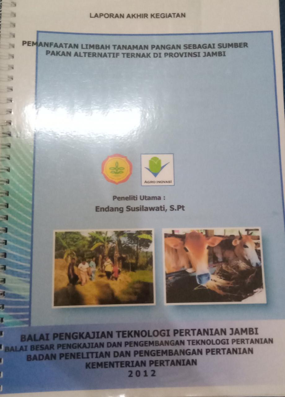 | Judul | Laporan akhir kegiatan Pemanfaatan limbah tanaman pangan sebagai sumber pakan alternatif ternak di Provinsi Jambi / Endang Susilawati |