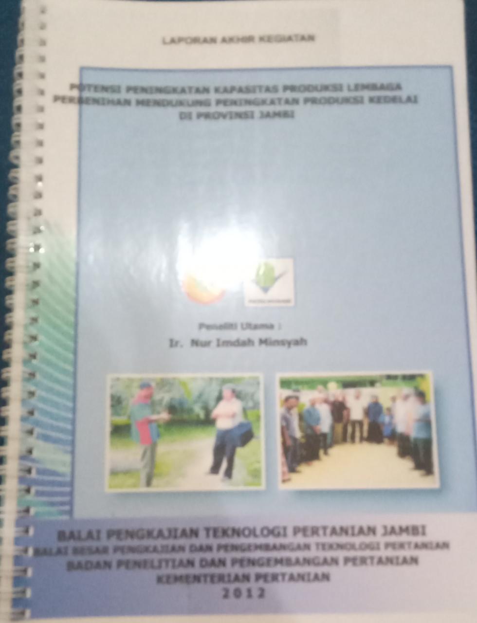 | Judul | Potensi peningkatan kapasitas produksi lembaga perbenihan mendukung peningkatan produksi kedelai di Provinsi Jambi : Laporan akhir kegiatan / Nur Imdah Minsyah |