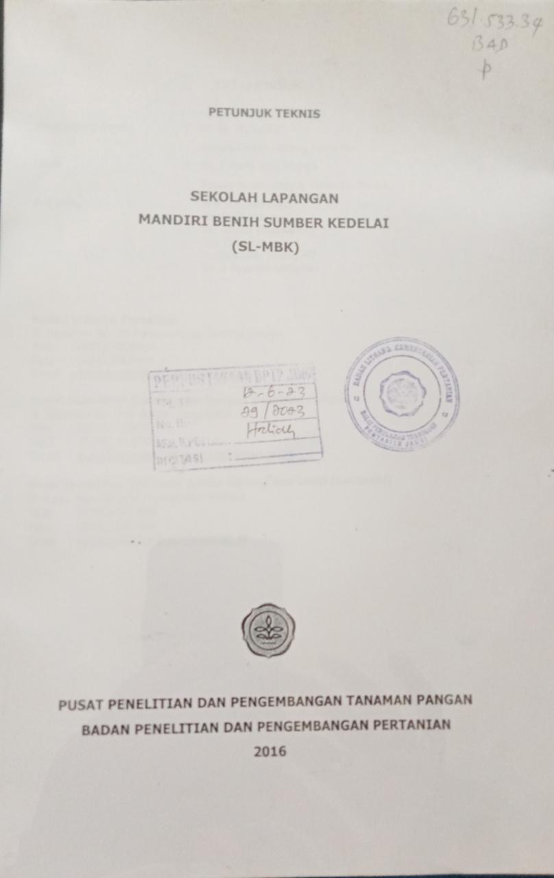 | Judul | Sekolah Lapangan Mandiri Benih Sumber Kedelai (SL-MBK) : Petunjuk Teknis / Badan Litbang Pertanian |