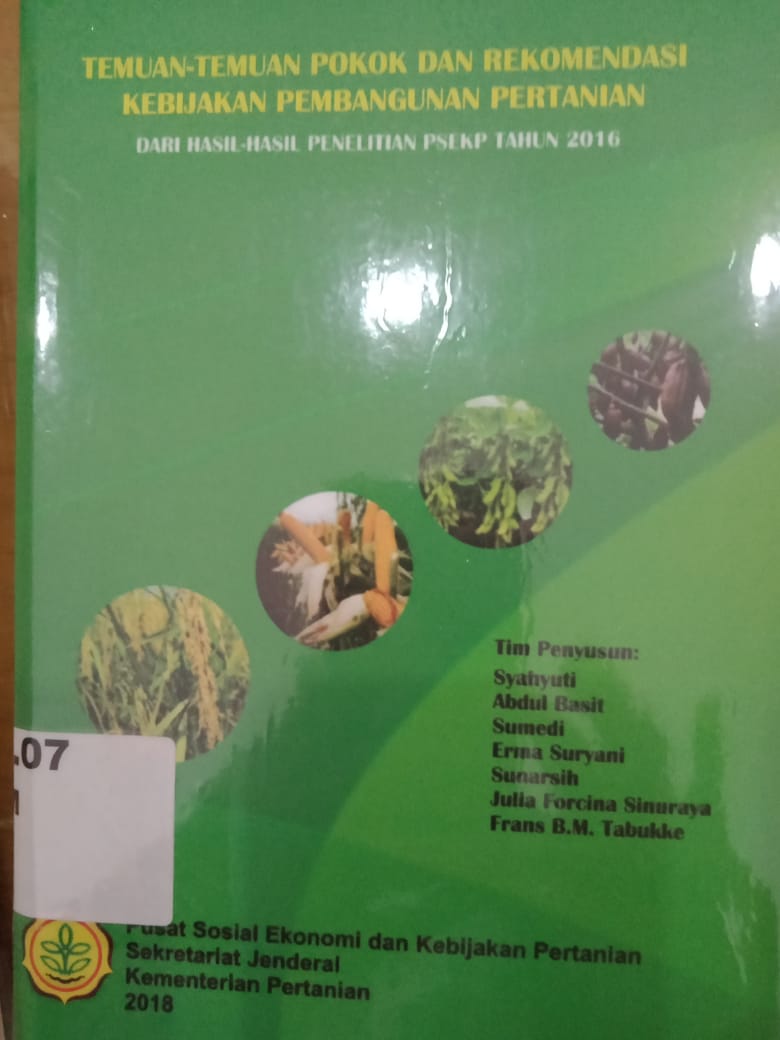 | Judul | Temuan-temuan pokok dan rekomendasi kebijakan pembangunan pertanian : Dari hasil-hasil penelitian PSEKP tahun 2016 / Syahyuti [et.al] |