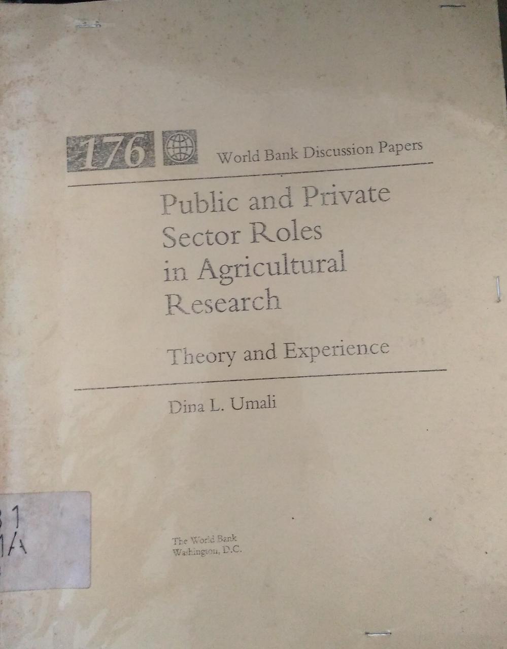 | Judul | Public and Private Sector Roles in Agricultural Research : theory and experience / Dina L. Umali |