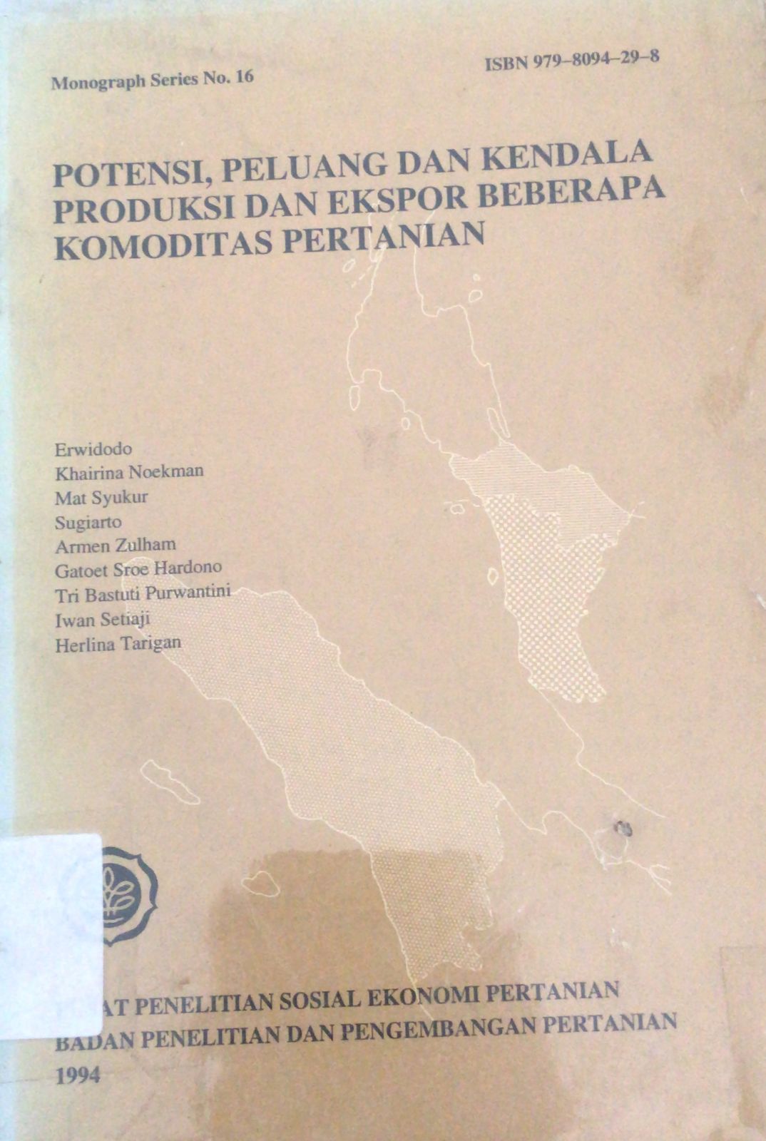 | Judul | POTENSI Peluang dan Kendala Produksi dan Ekspor Beberapa Komoditas Pertanian / Erwidodo .--[et.al] |