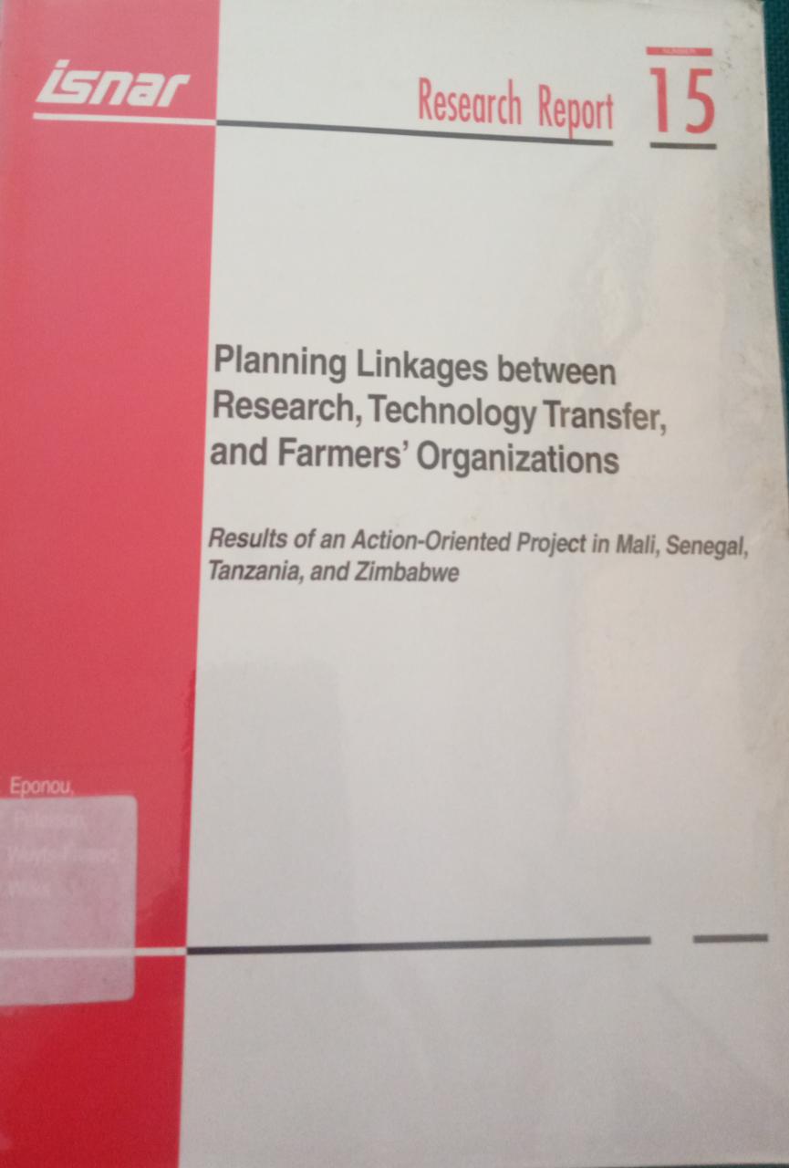 | Judul | Planning Linkages Between Research, Tecnology Transfer, and Farmers Organizations : Results of an Action-Oriented Project in Mali, Senegal, Tanzania, and Zimbabwe / T. Eponou .-- {et. al} |
