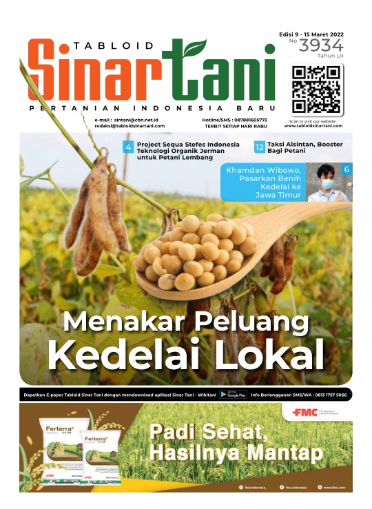 | Judul | Tabloid Sinar Tani Pertanian Indonesia Baru Edisi 9-15 Maret 2022 No. 3934 Tahun LII : Menakar Peluang Kedelai Lokal / Dr. Ir. Memed Gunawan |