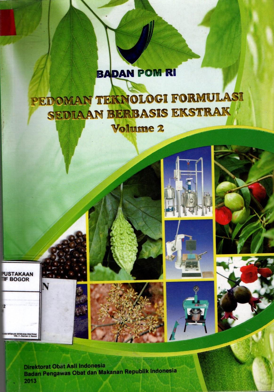| Judul | PEDOMAN TEKNOLOGI FORMULASI SEDIAAN BERBASIS EKSTRAK VOLUME 2 : BADAN POM RI / DIREKTORAT OBAT ASLI INDONESIA BADAN PENGAWAS OBAT DAN MAKANAN |