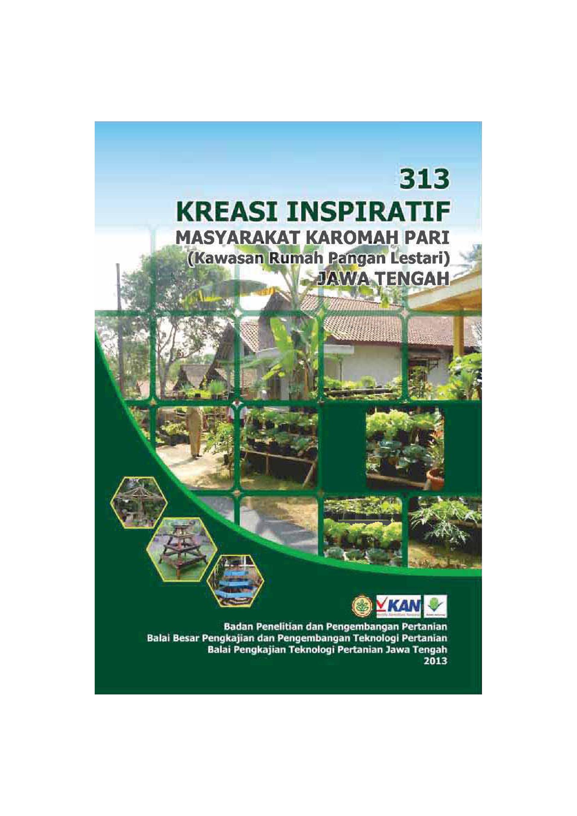 | 1 | 313kreasi-karomahparijateng.pdf | 313 Kreasi Inspiratif Masyarakat Karomah Pari (Kawasan Rumah Pangan Lestari) Jawa Tengah | Baca Online |