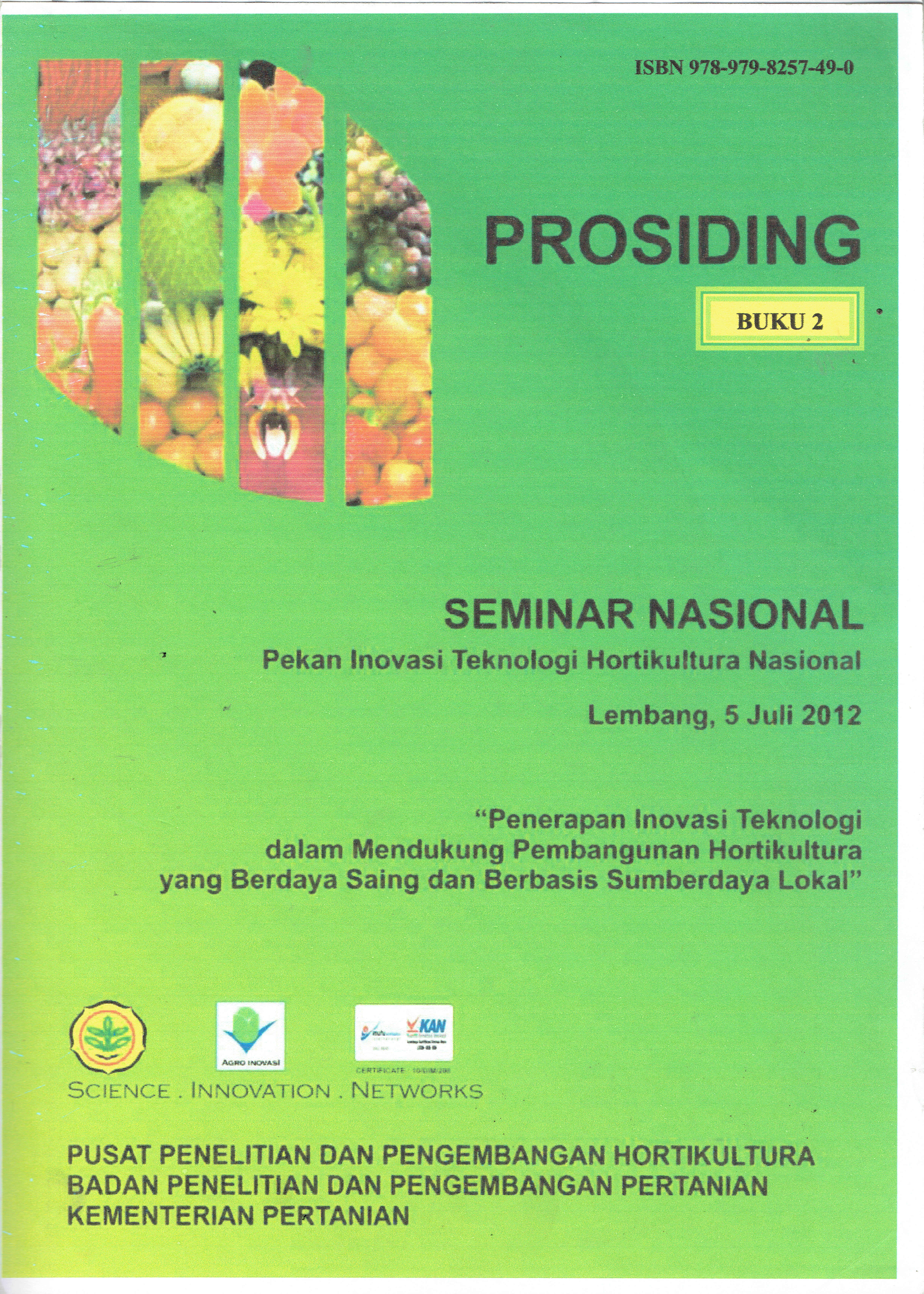 | Judul | Prosiding Seminar Nasional Pekan Inovasi Teknologi Hortikultura Nasional Buku 2 : "Penerapan Inovasi Teknologi dalam Mendukung Pembangunan Hortikultura yang Berdaya Saing dan Berbasis Sumberdaya Lokal" / Dr. Ir. M. Prama Yufdy, Msc. |