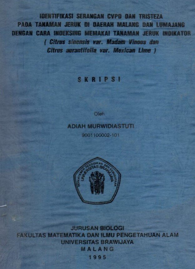| Judul | Identifikasi Serangan CVPD dan Tristeza Pada Tanaman Jeruk di Daerah Malang dan Lumajang Dengan Cara Indeksing Memakai Tanaman Jeruk Indikator |