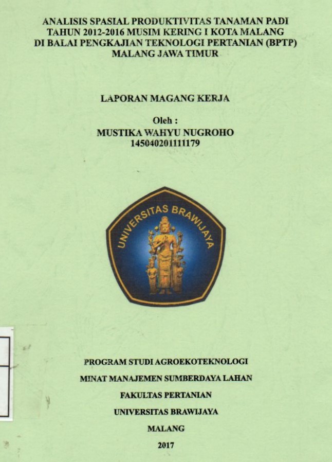 | Judul | Analisa Spasial Produktivitas Padi Tahun 2012-2016 Musim Kering I Kota Malang di Balai Pengkajian Teknologi Pertanian (BPTP) Malang Jawa Timur |