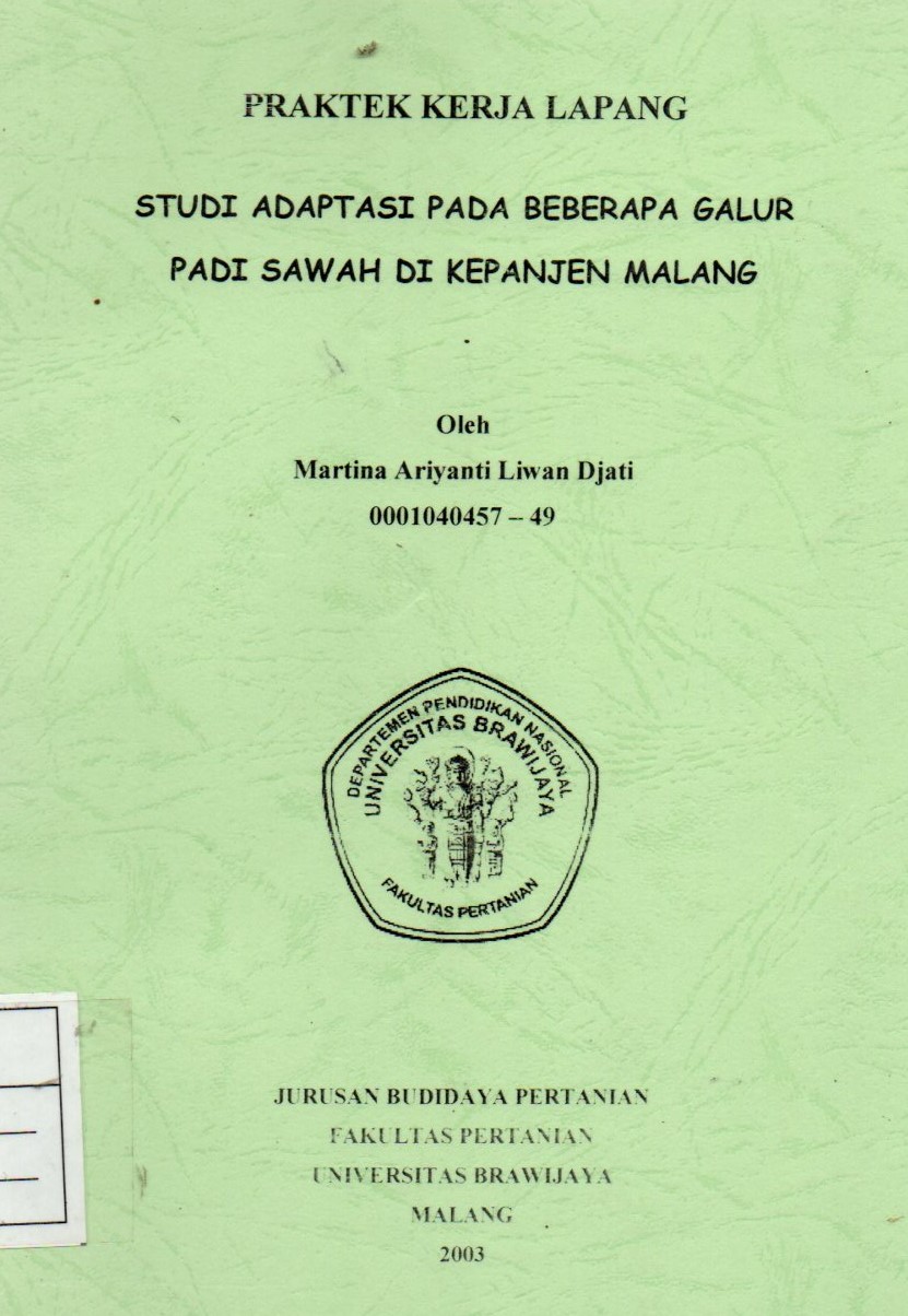 | Judul | Praktek Kerja Lapang Studi Adaptasi Pada Beberapa Galur Padi Sawah di Kepanjen Malang |