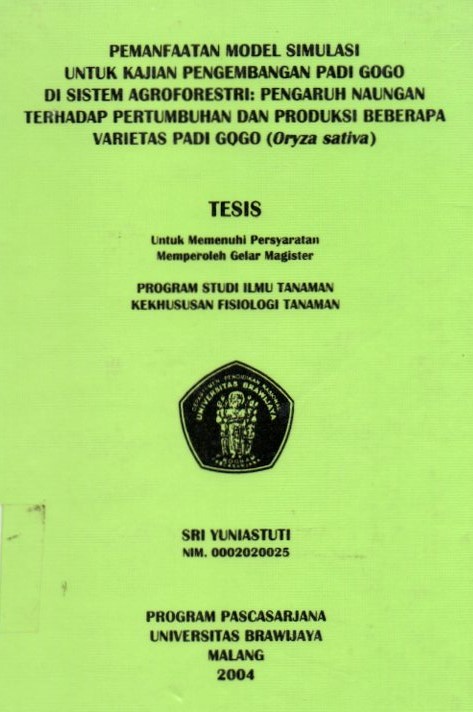 | Judul | Pemanfaatan Model Simulasi Untuk Kajian Pengembagan Padi Gogo di Sistem Agroforestri Pengaruh Naungan Terhadap Pertumbuhan dan Produksi Beberapa Varietas Padi Gogo (Oryza sativa) |