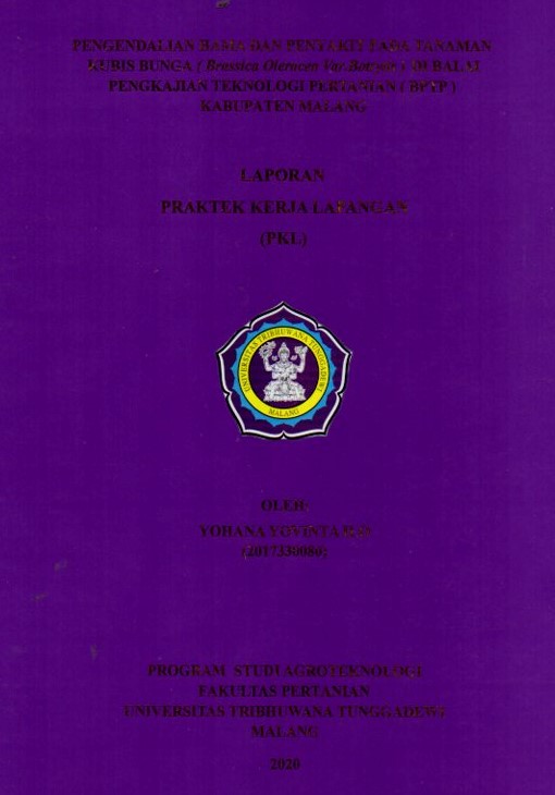 | Judul | Pengendalian Hama dan Penyakit Pada Tanaman Kubis Bunga (Brassica Var.Botrytis) di Balai Pengkajian Teknologi Pertanian (BPTP) Kabupaten Malang |