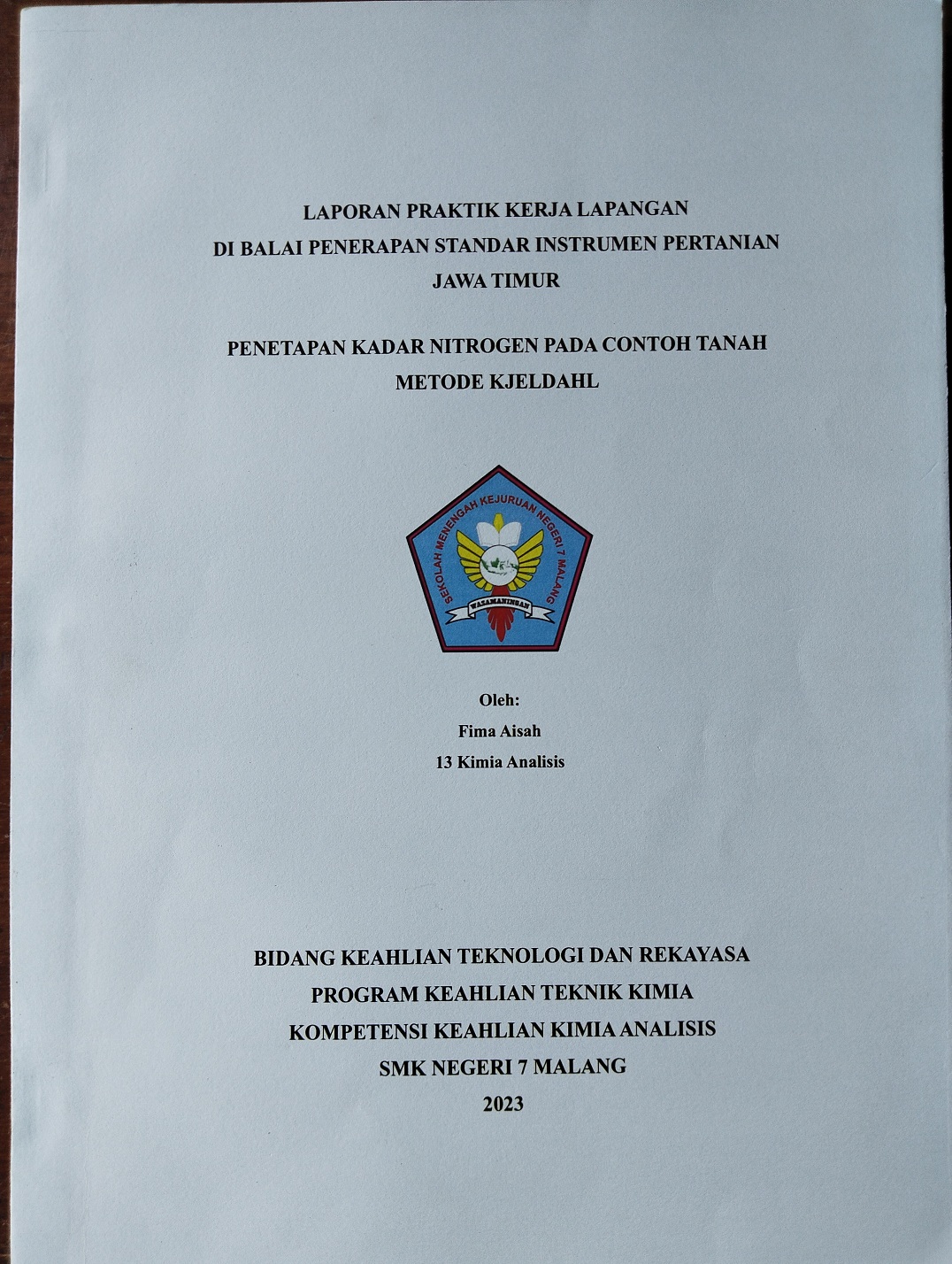 | Judul | Laporan Pratik Kerja Lapang di Balai Penerapan Standar Instrumen Perrtanian Jawa Timur Penetapan Kadar Nitorgen Pada Contoh Tanah Motode KJELDAHL |