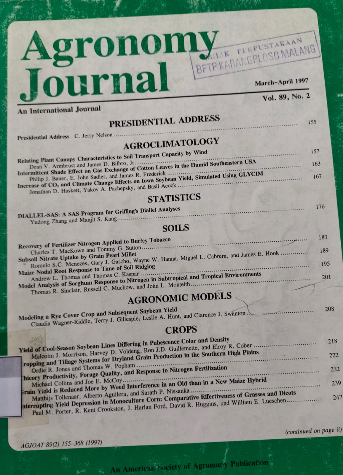 | Penerbitan | USA : American Sosciety of Agronomy Publication, 1997 |