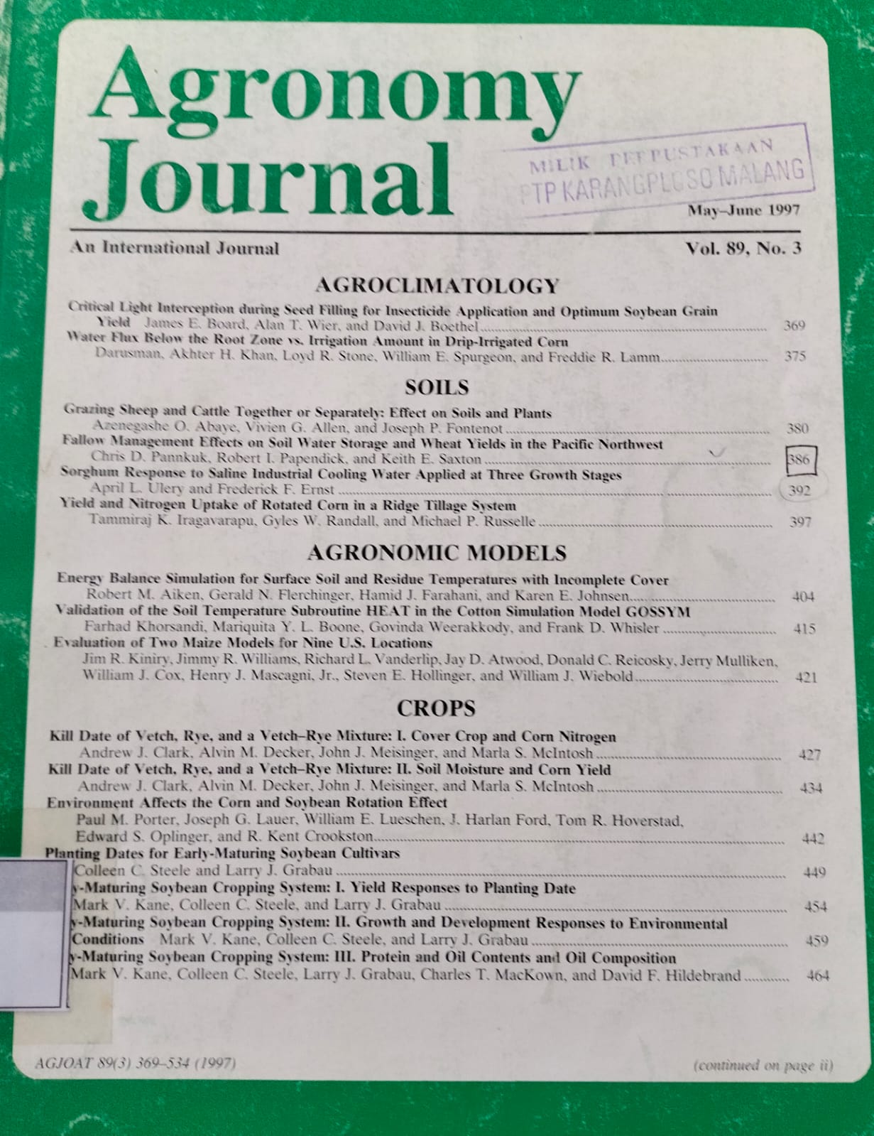 | Penerbitan | USA : American Sosciety of Agronomy Publication, 1997 |