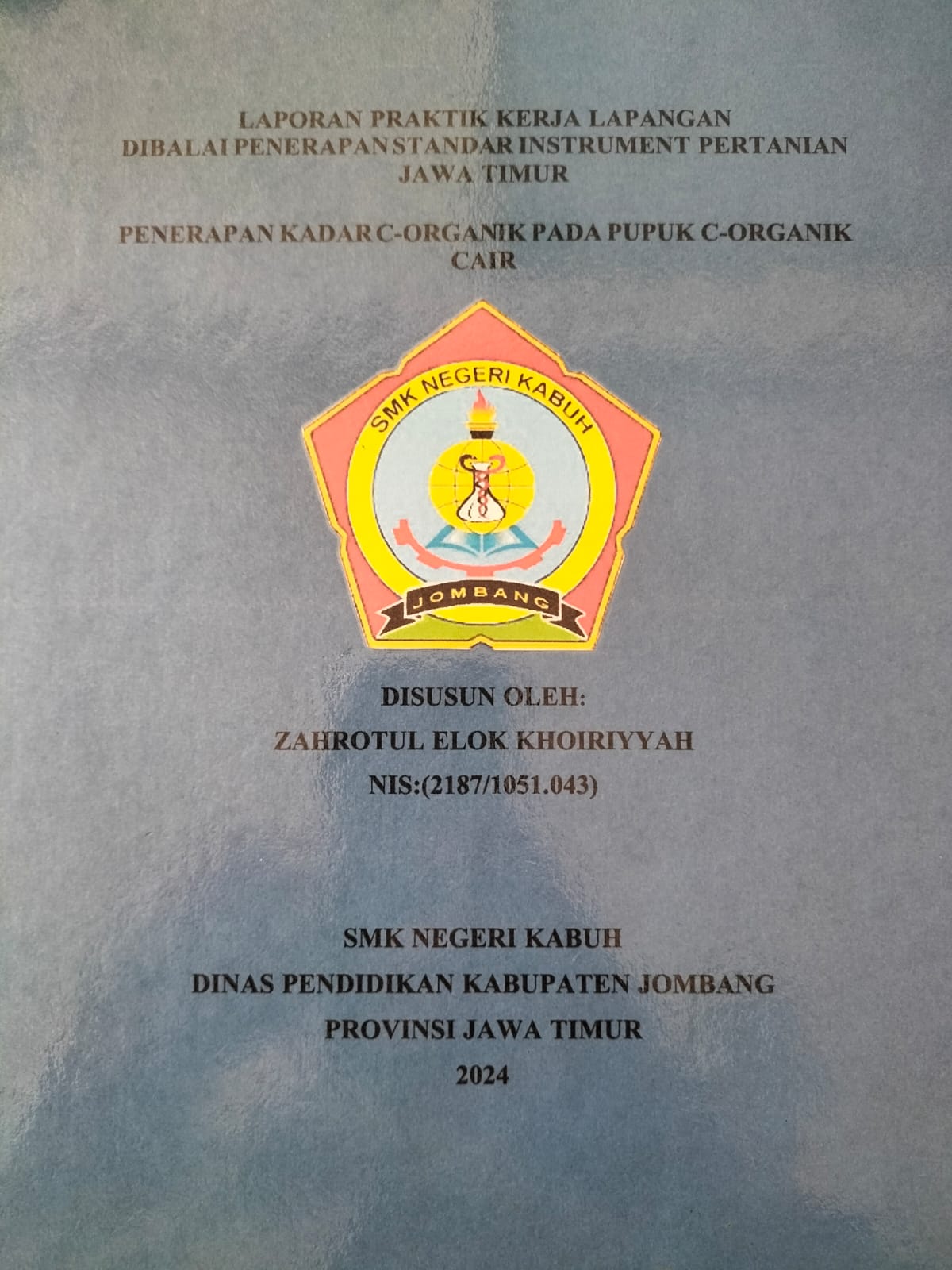 | Judul | Laporan Pratik Kerja Lapangan di Balai Penerapan Standar Instrumen Pertanian Jawa Timur Penerapan Kadar C- Organik Pada Pupuk C-Organik Cair |