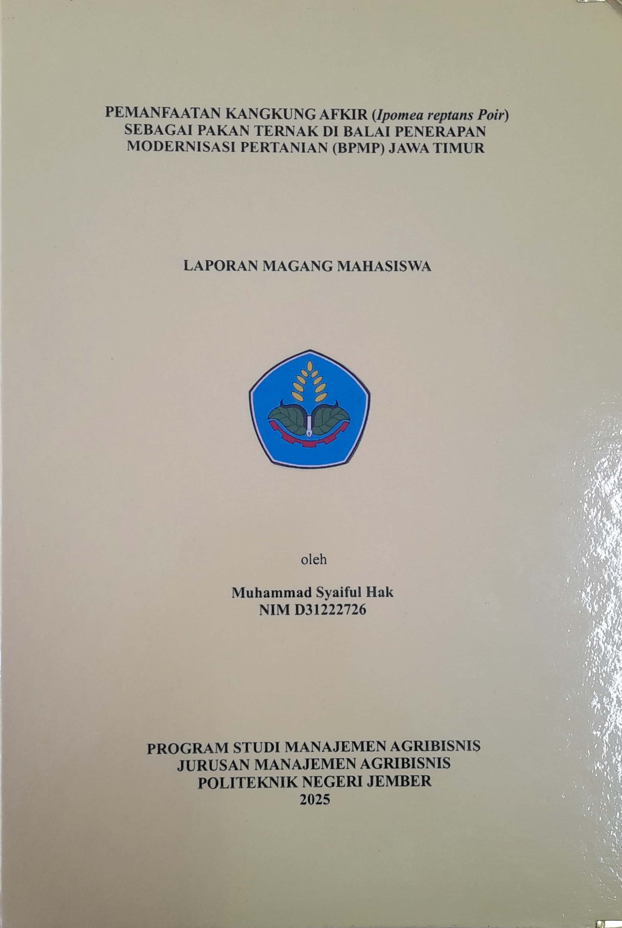 | Judul | Pemanfaatan Kangkung Afkir (Ipomea repstan poir) Sebagai Pakan Ternak Di Balai Penerapan Modernisasi Pertanian (BPMP) Jawa Timur |