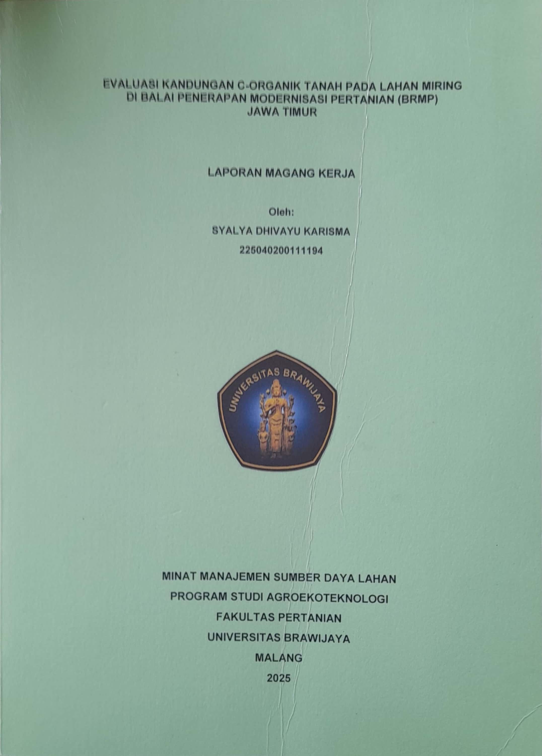 | Judul | Evaluasi Kandungan C-Organik Pada Tanah Lahan Miring D Balai Penerapan Modernisasi Pertanian Jawa Timur |