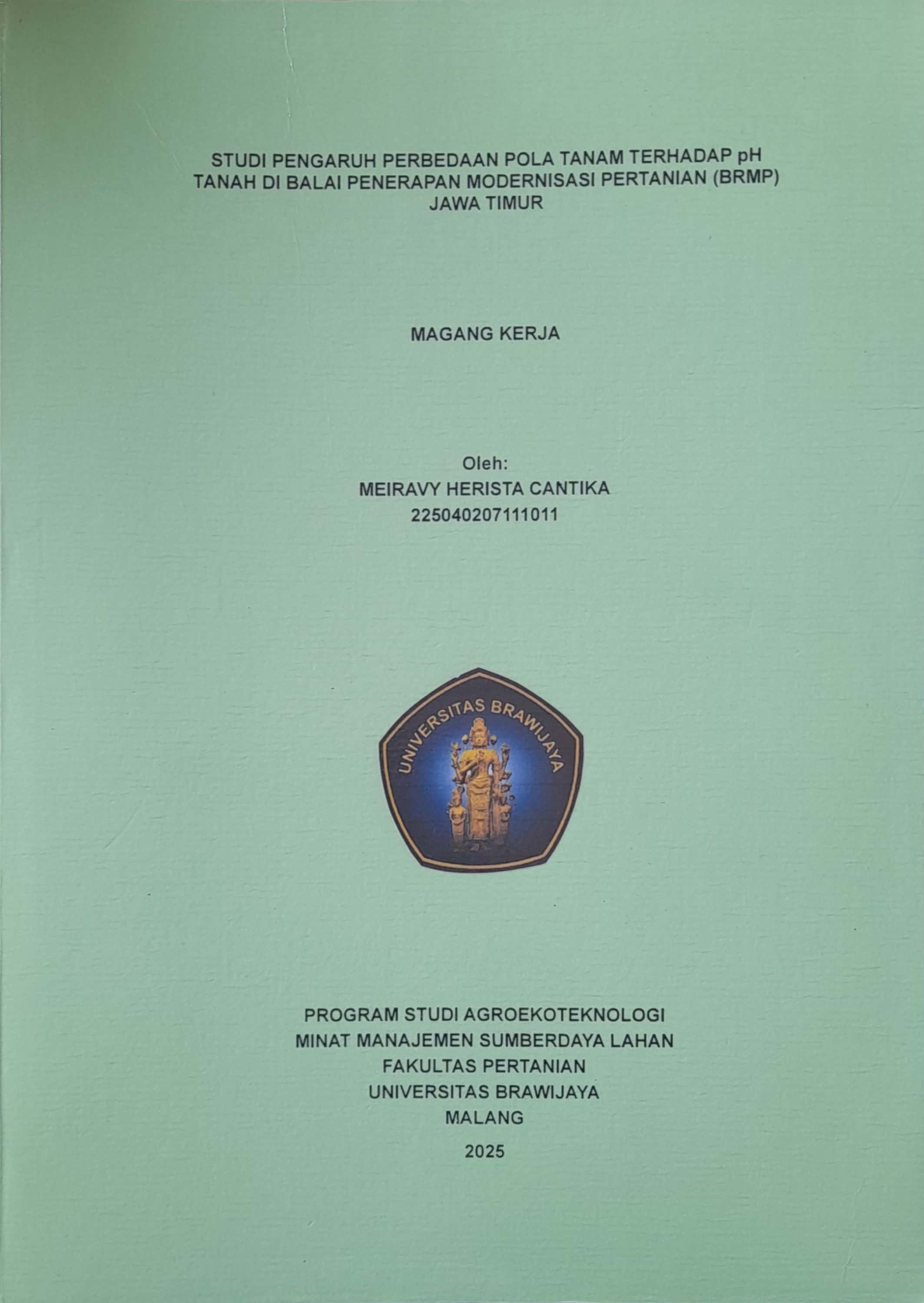 | Judul | Studi Pengaruh Perbedaan Pola Tanam Terhadap pH Tanah Di Balai Penerapan Modernisasi Pertanian Jawa Timur |