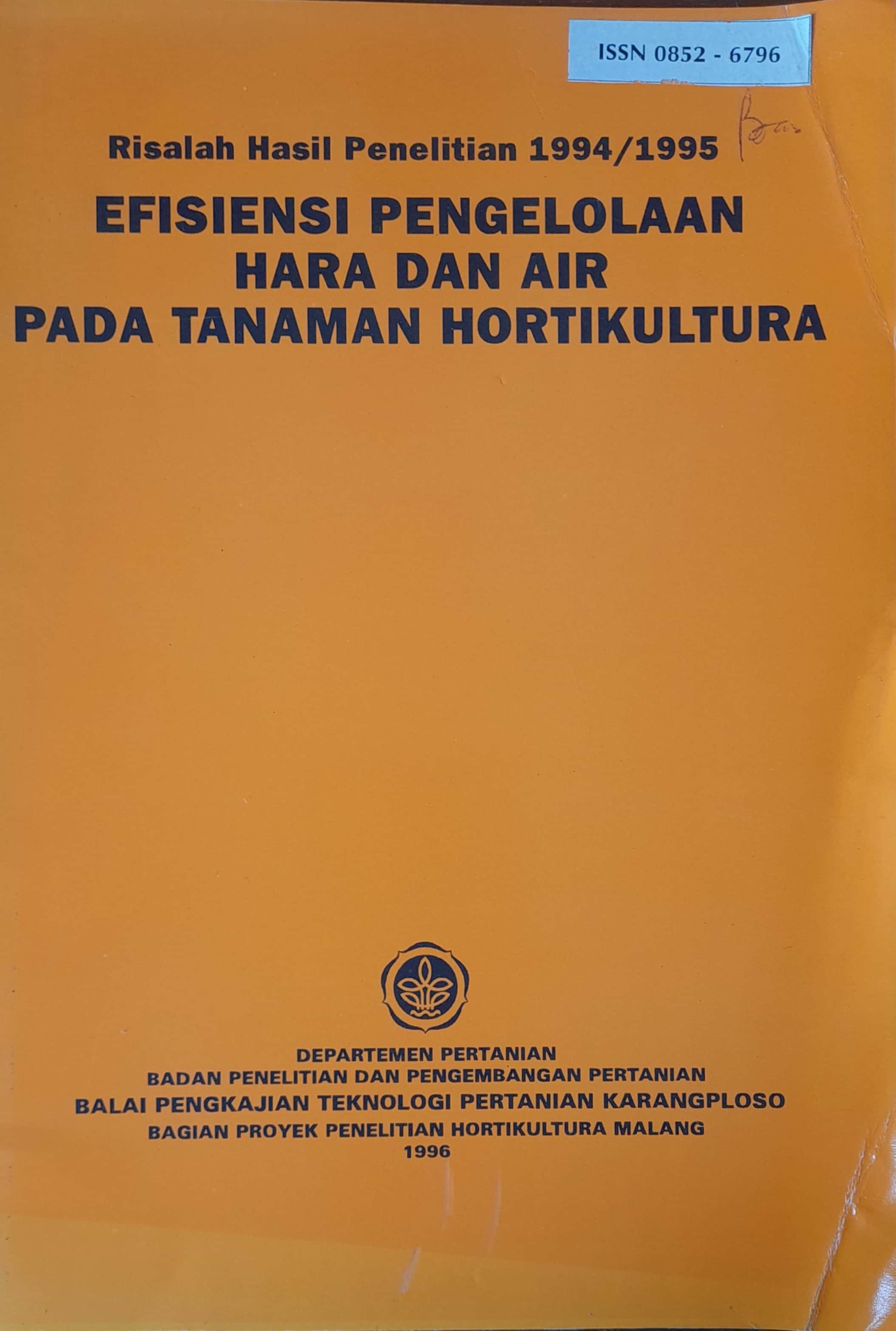 | Judul | Risalah Hasil Penelitian 1994/1995 Efisiensi Pengelolaan Hara Dan Air Pada Tanaman Hortikultura |