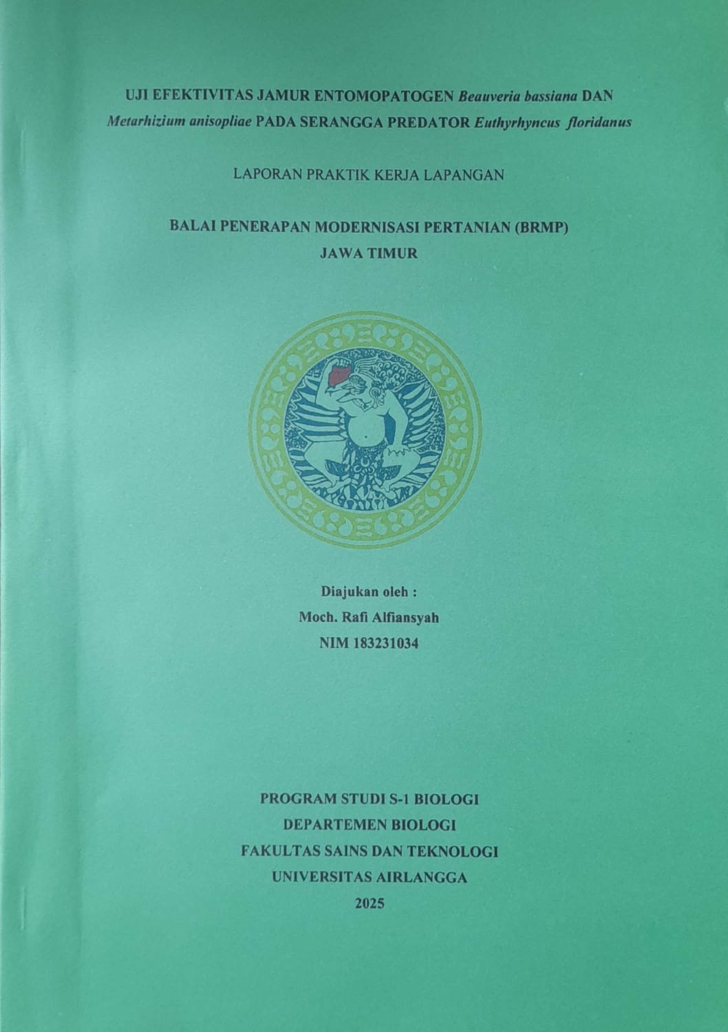 | Judul | Uji Efektifitas Jamur Entomopatogen Beauveria bassiana Dan Metarhizium anisopliae Pada Serangga Predator Euthyrhyncus floridanus Balai Penerapan Modernisasi Pertanian (BRMP) Jawa Timur |