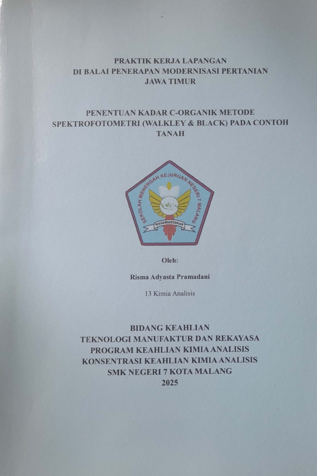 | Judul | Penentuan Kadar C-Organik Metode Spektrofotometri (Wakley & Black) Pada Contoh Tanah Di Balai Penerapan Modernisasi Pertanian Jawa Timur |