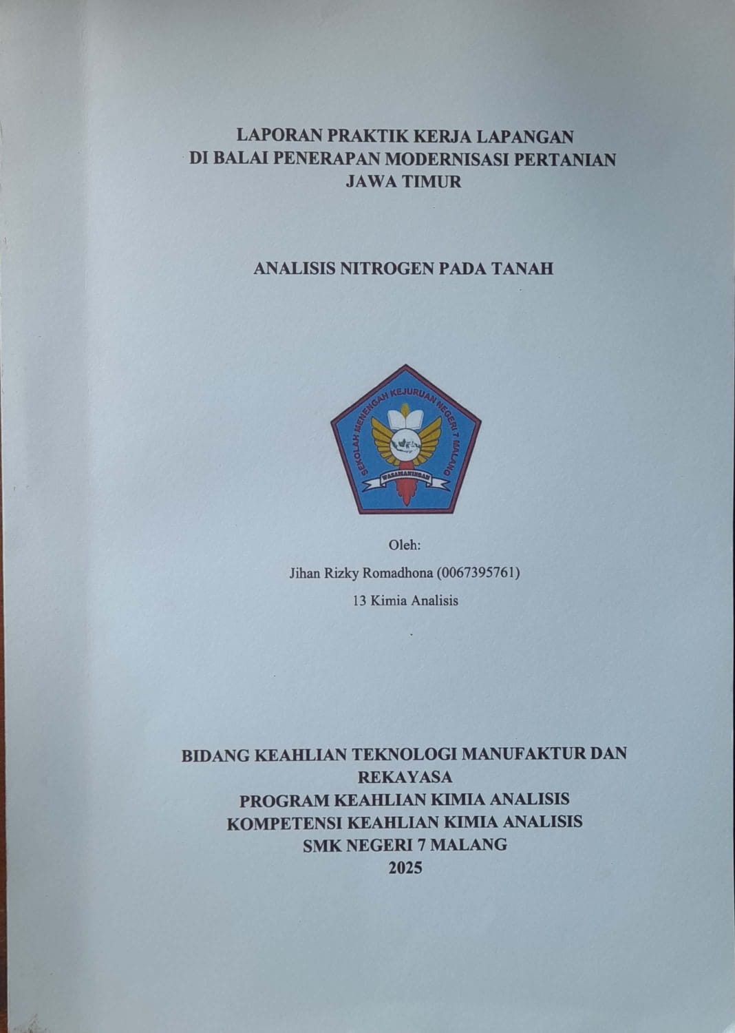 | Judul | Analisis Nitrogen Pada Tanah DI Balai Penerapan Modernisasi Pertanian Jawa Timur |