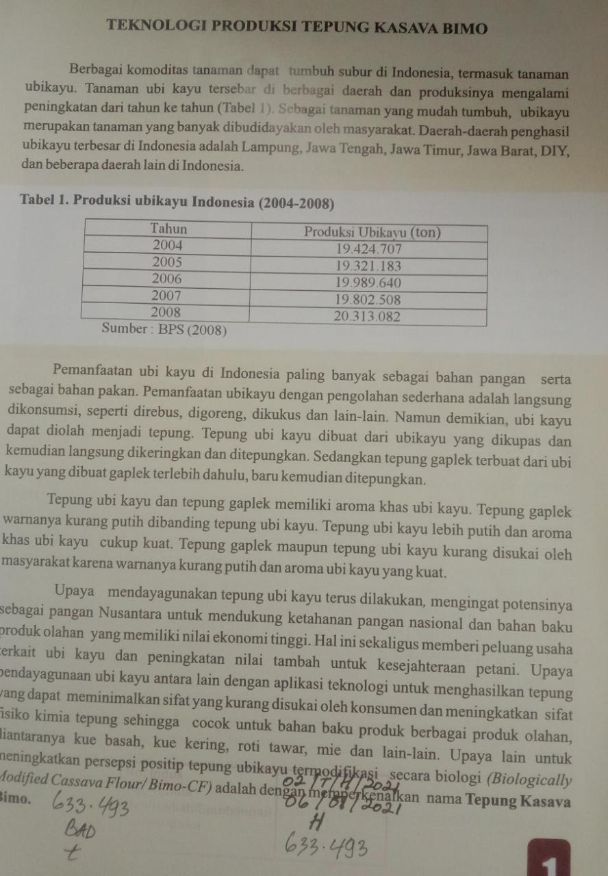 | Judul | Teknologi Produksi Tepung Kasava Bimo / Badan Penelitian dan Pengembangan Pertanian |