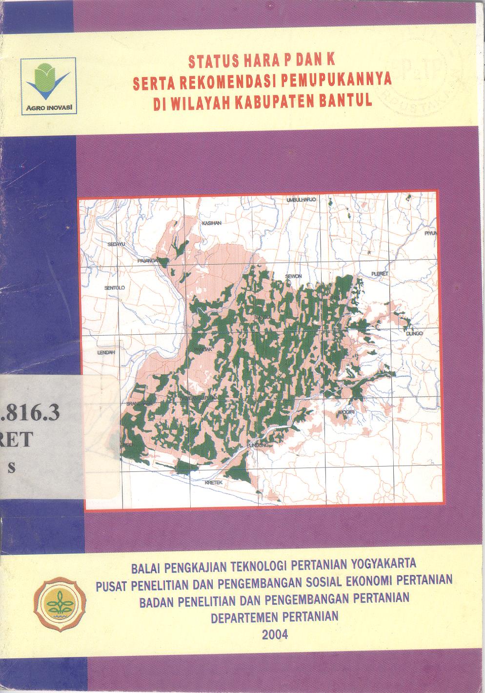 | Judul | Status Hara P dan K Serta Rekomendasi Pemupukannya Di Wilayah Kabupaten Bantul |