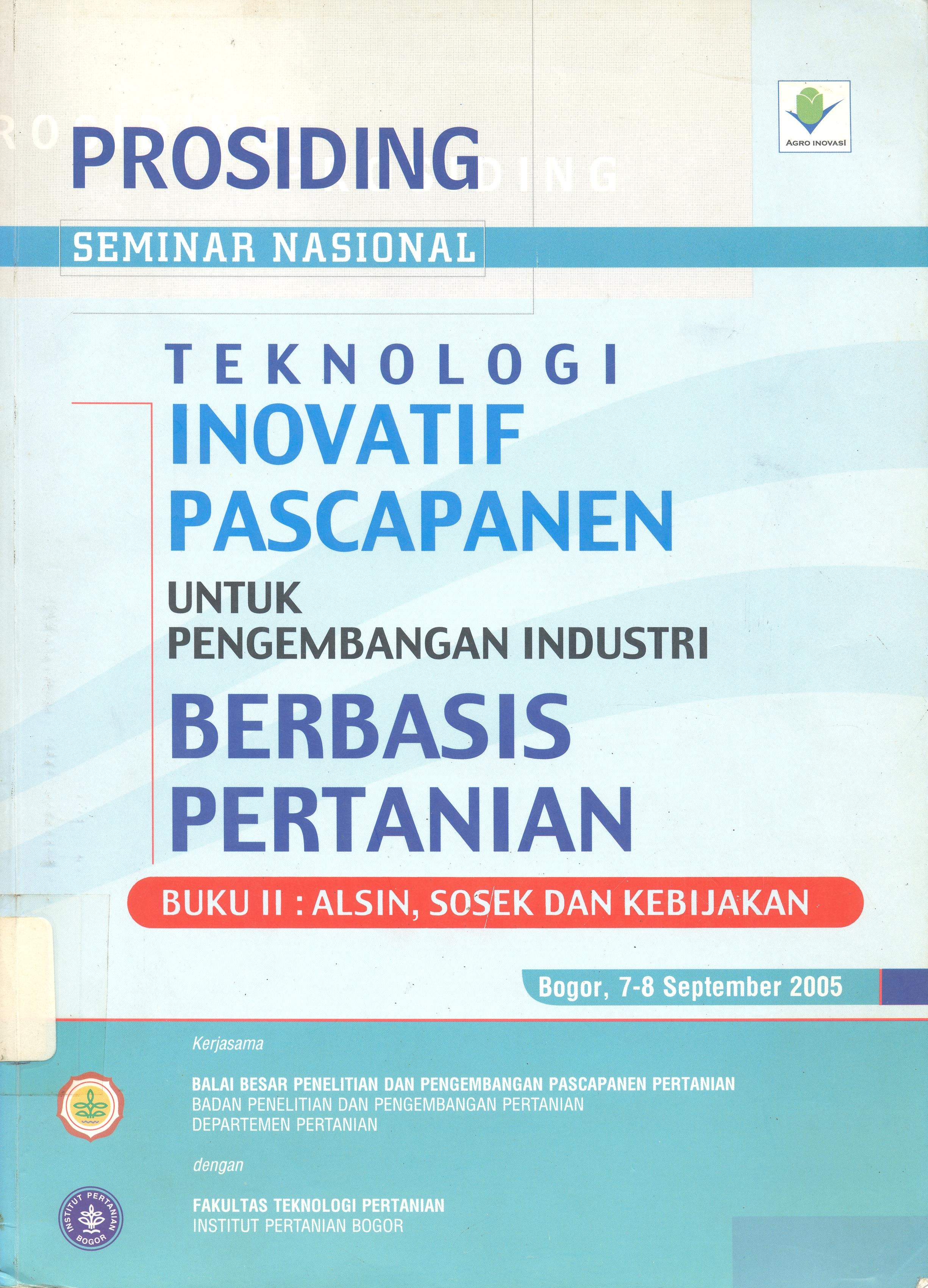 | Judul | Prosiding Seminar Nasional Teknologi Inovatif Pascapanen untuk Pengembangan Industri Berbasis Pertanian : Buku 1 : Alsin, Sosek dan Kebijakan : Bogor, 7-8 September 2005 |