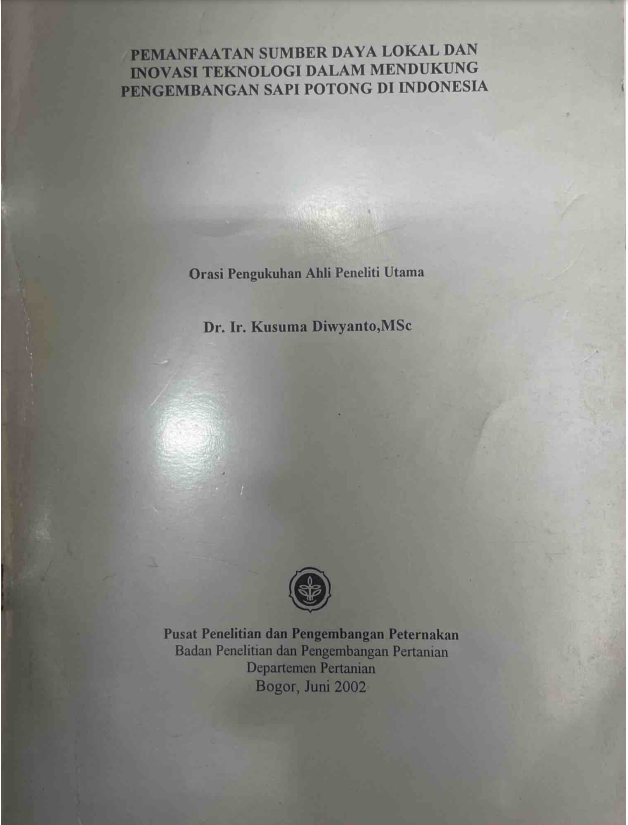 | Judul | Pemanfaatan Sumber Daya Lokal dan Inovasi Teknologi dalam Mendukung Pengembangan Sapi Potong di Indonesia : Orasi Pengukuhan Ahli Peneliti Utama |