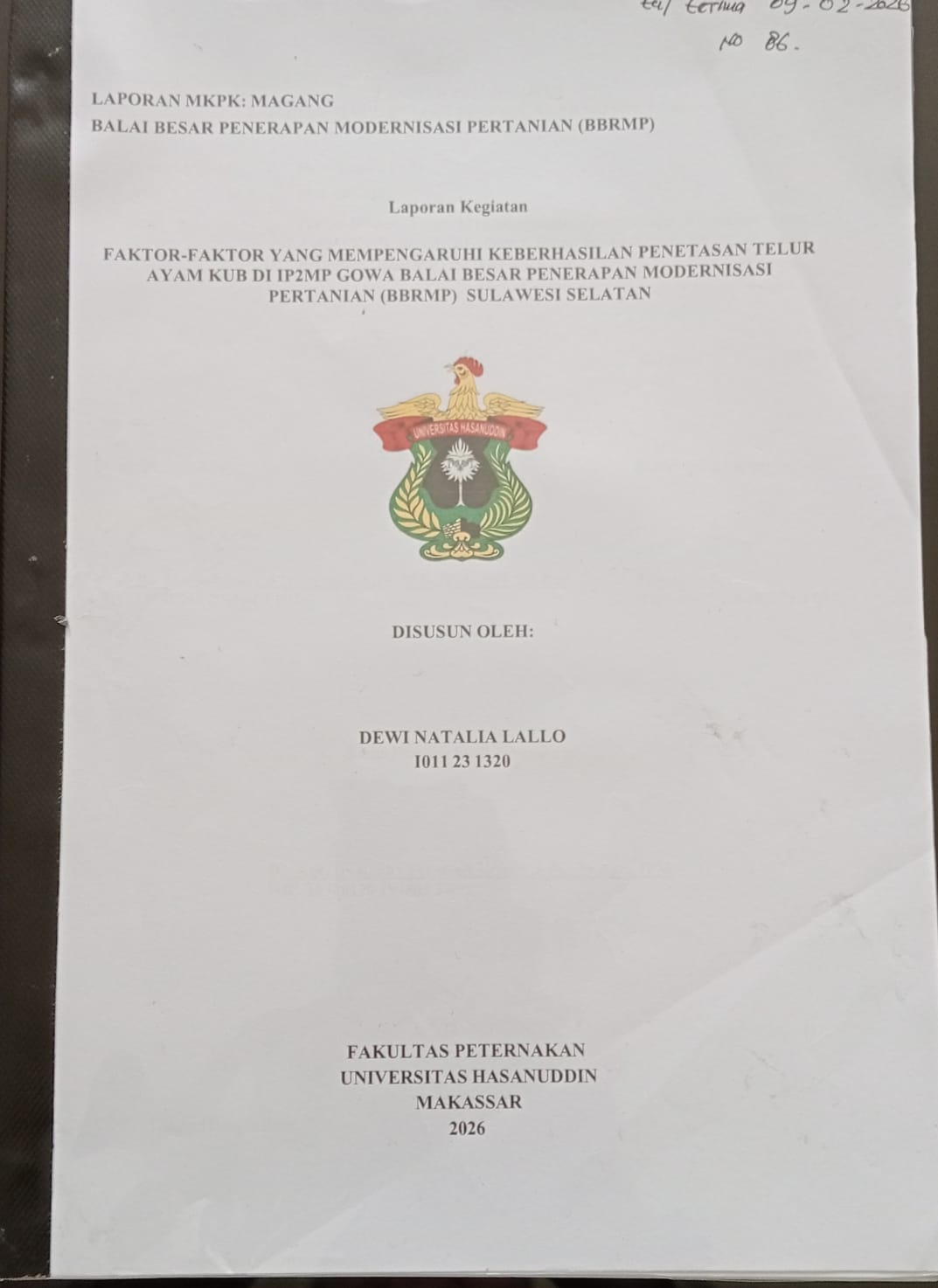 Faktor -faktor Yang Mempengsruhi Keberhasilan Penetasan Telur Ayam KUB DI IP2MP GOWA / Rul Fahrul