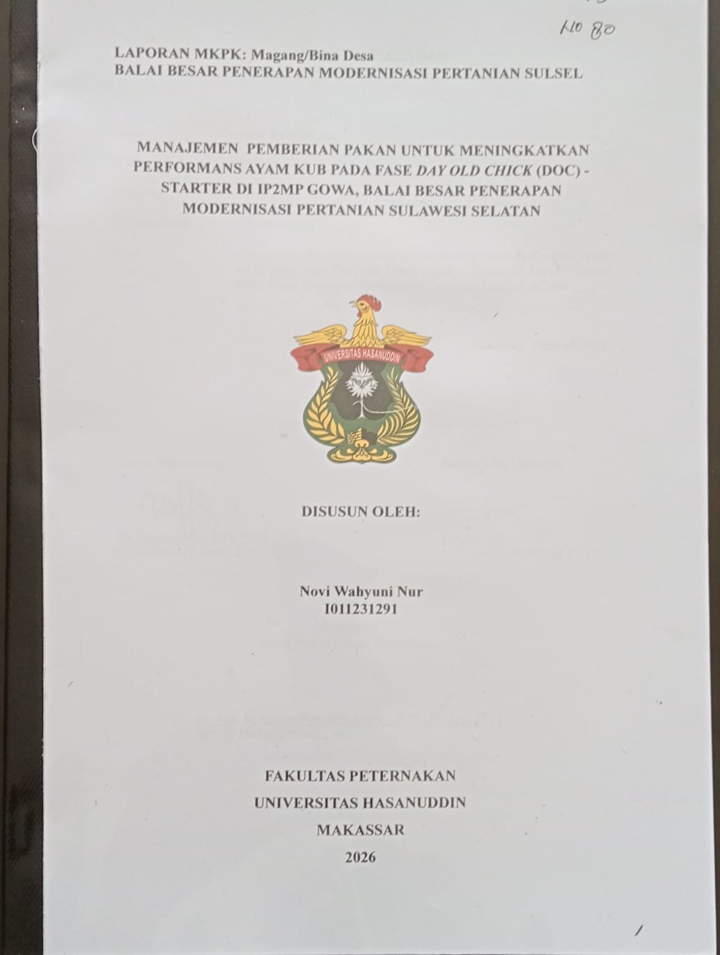 Manajemen Pemberitaan Pakan Untuk Meningkatkan Performasi Ayam KUB Pada Fase Ayam DAY OLD CHICK {DOC....