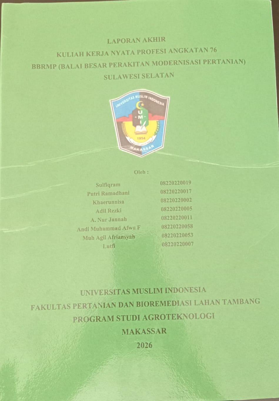 MAGANG MKPK BALAI BESAR PENERAPAN MODERINISASI PERTANAN SULAWESI SELATAN / Yusmasari .S.Pi,M.sI