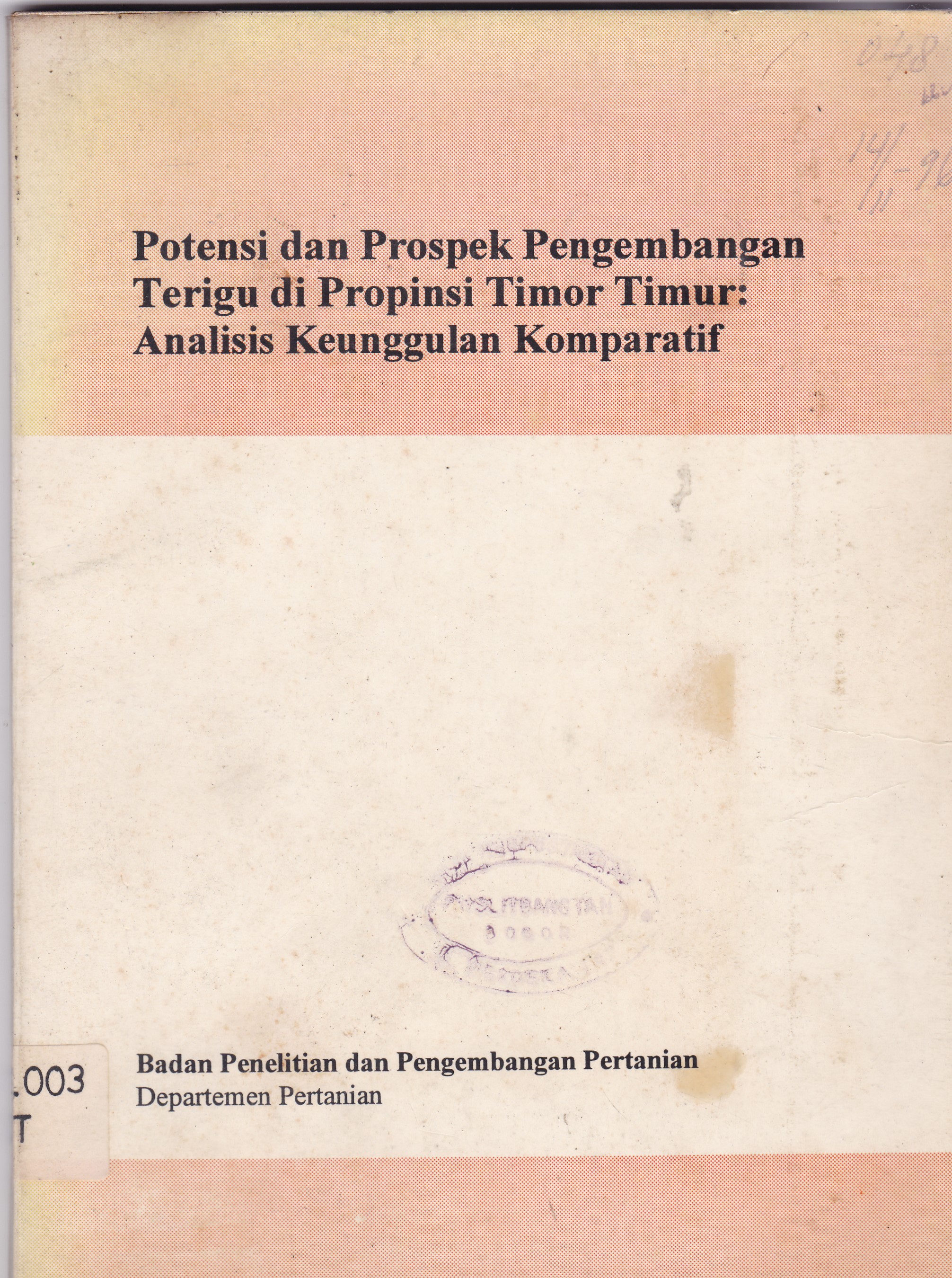 | Judul | Potensi dan prospek pengembangan terigu di provinsi Timor Timur : Analisis keunggulan komparatif / Badan Penelitian dan Pengembangan Pertanian |