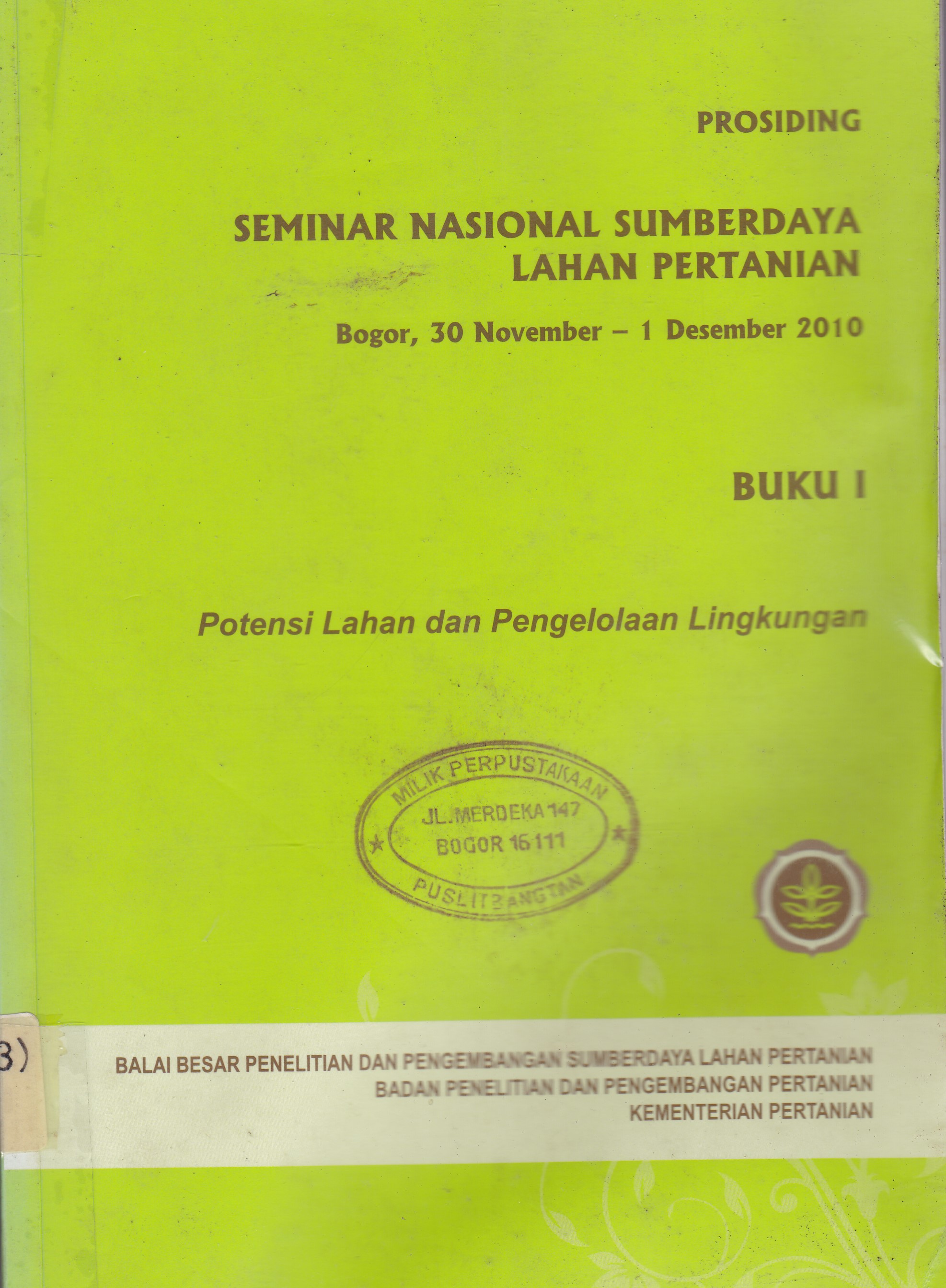 | Penerbitan | Bogor : Balai besar penelitian dan pengembangan sumberdaya lahan pertanian, 2010 |