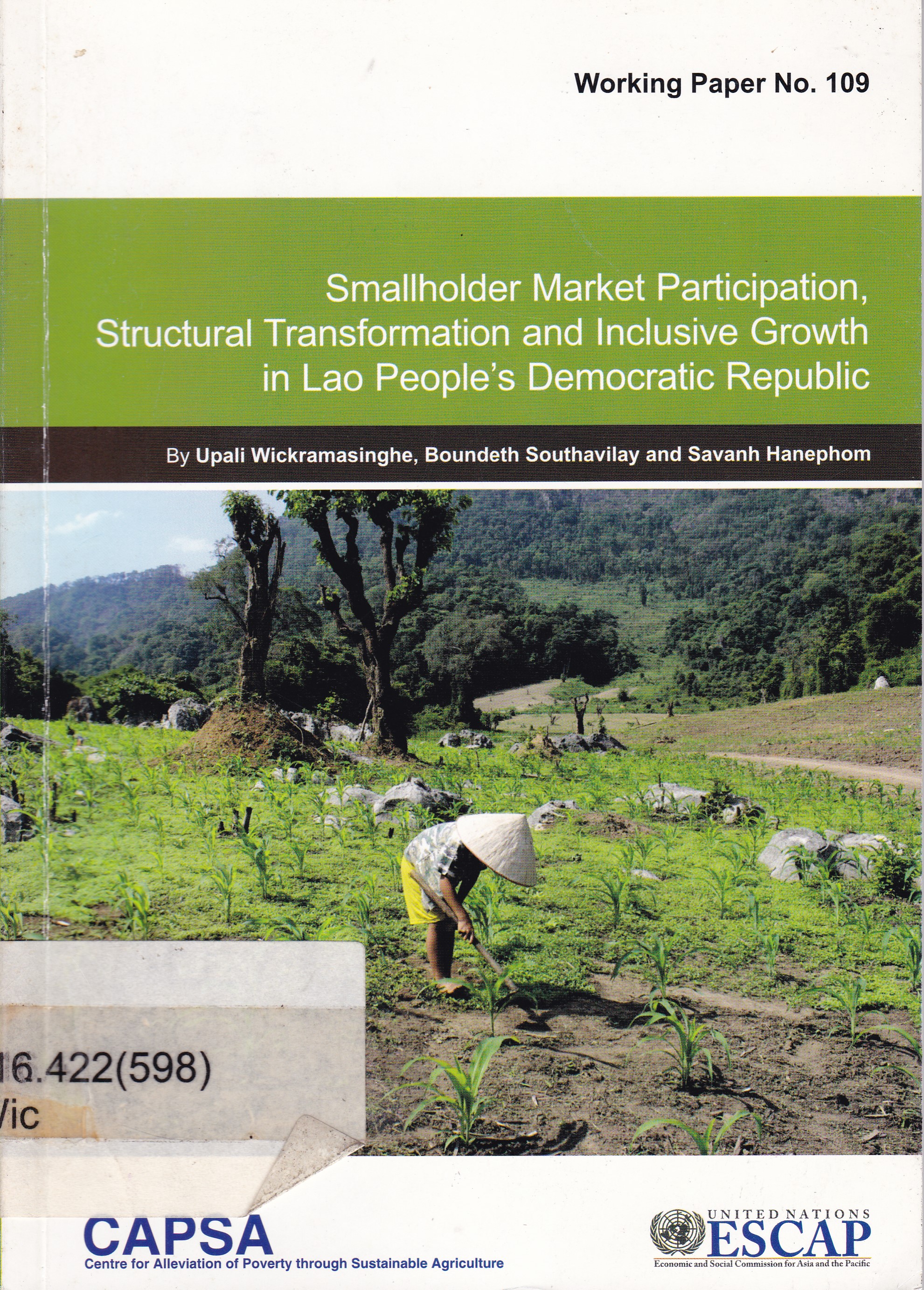 | Judul | Smallholder market participation, structural transformation and inclusive growth in lao people's democratic republic / Upali Wickramasinghe; Boundeth Southavilay; Savanh Hanephom |