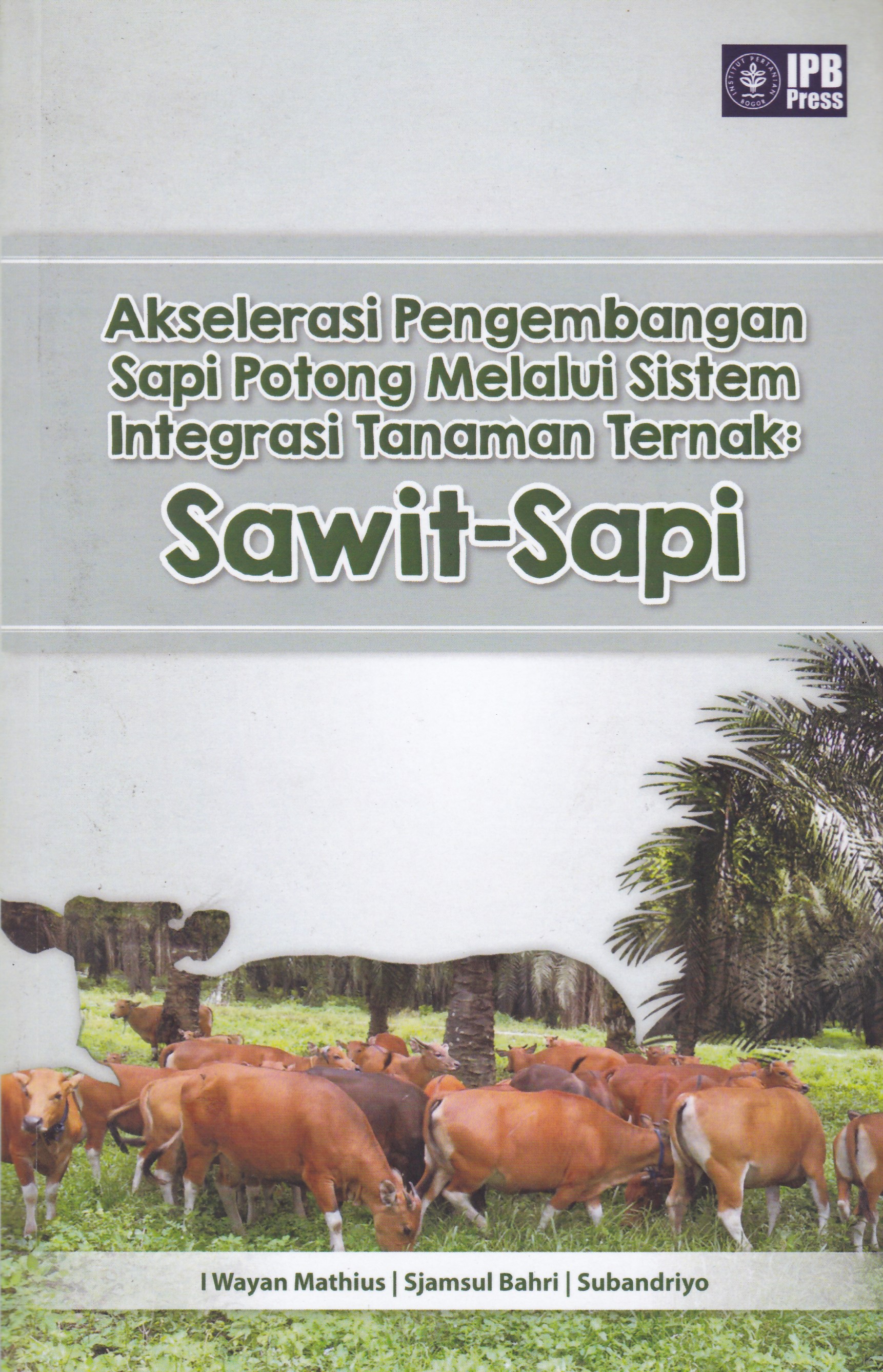 | Judul | Akselerasi pengembangan sapi potong melalui sistem integrasi tanaman ternak : sawit-sapi / Atien Priyanti, Reli Hevrizen, Elmen Basri, Rijanto Hutasoit, Rian Rosantio, Simon Elesier, Antonius, Syarifah, Zul Efendi, Erpan Ramon (dan 25 pengarang lainnya) ; penyunting, I Wyan Mathius, Sjamsul Bahri, Subadriyo |