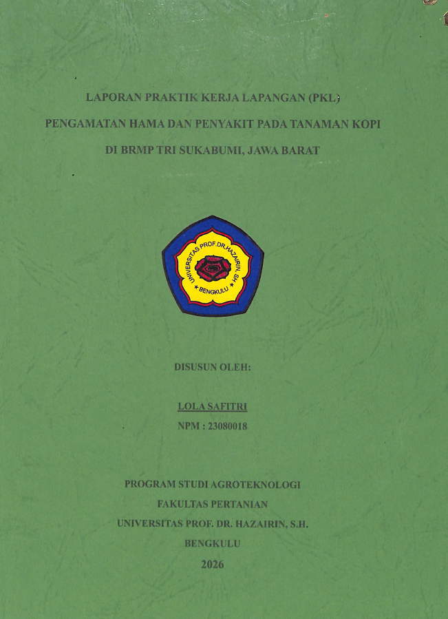 Laporan Praktek Kerja Lapangan (PKL) Pengamatan hama dan penyakit pada tanaman kopi di BRMP TRI suka....