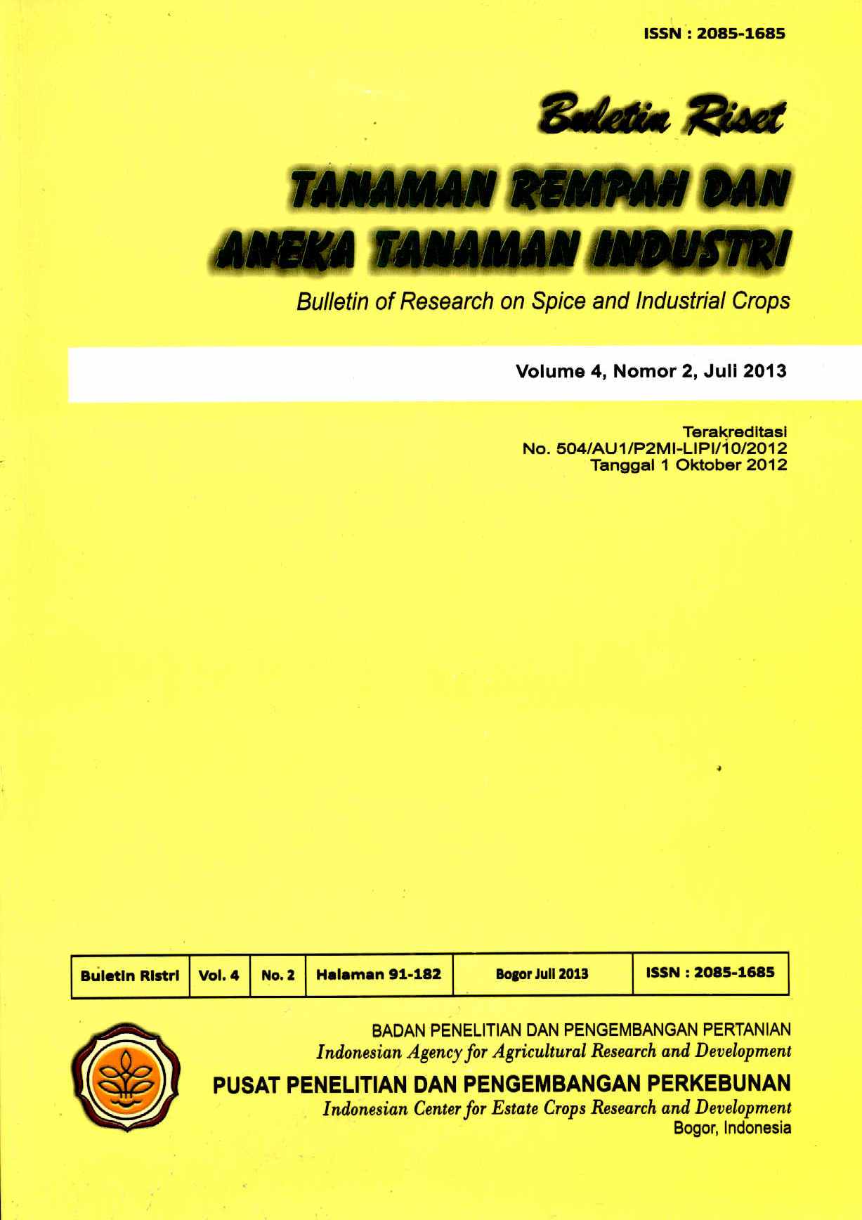 | Judul | BULETIN RISET TANAMAN REMPAH DAN ANEKA TANAMAN INDUSTRI VOL 4, NO. 2, JULI 2013 |