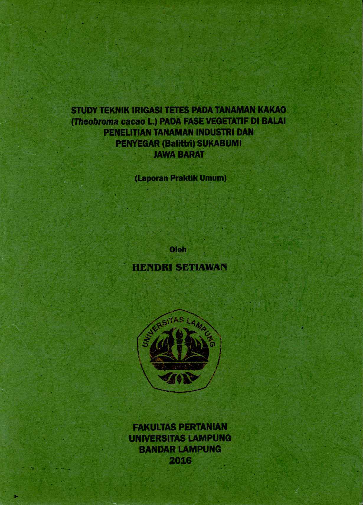 | Judul | (LPU) STUDY TEKNIK IRIGASI TETES PADA TANAMAN KAKAO (THEOBROMA CACAO L.) PADA VASE VEGETATIF DI BALITTRI |