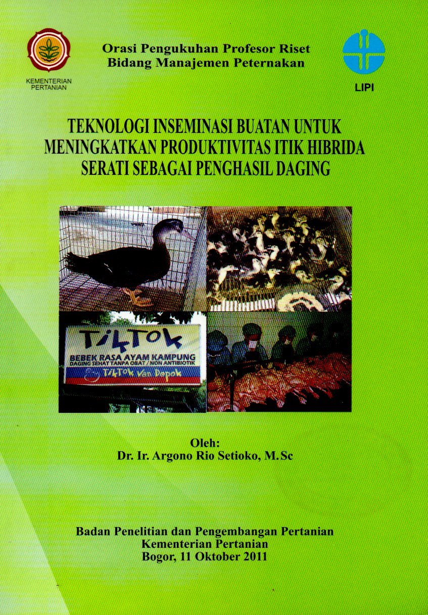 | Judul | Teknologi inseminasi buatan untuk meningkatkan produktivitas itik hibrida serati sebagai penghasil daging : Orasi pengukuhan profesor riset bidang manajemen peternakan / Argono Rio Setioko |