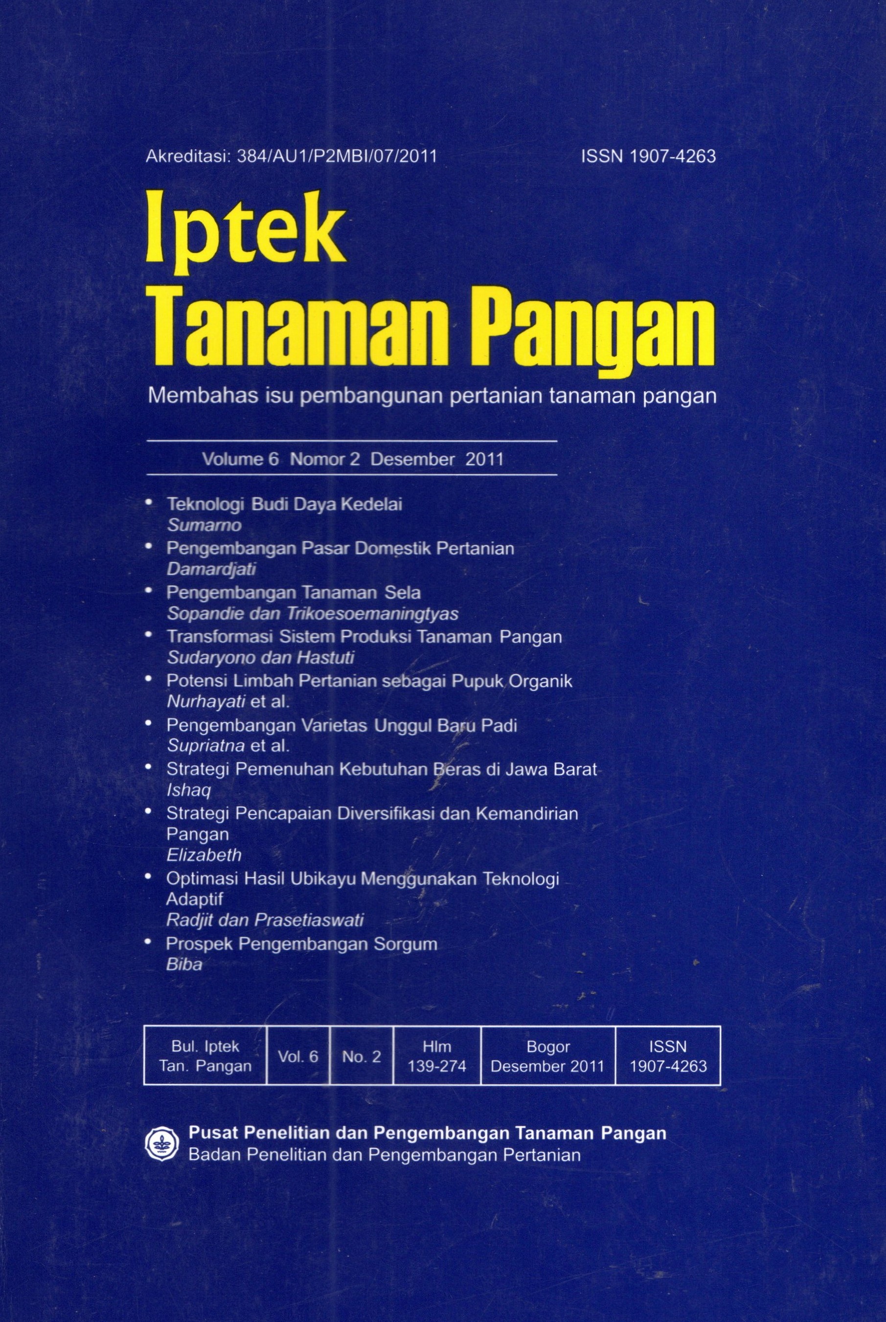 | Judul | Iptek tanaman pangan membahas isu pembangunan pertanian tanaman pangan : Vol. 6 No. 2, Desember 2011 / Kepala Pusat Penelitian dan Pengembangan Tanaman Pangan |